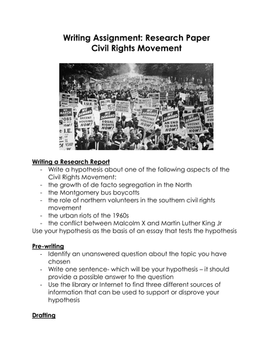 Read this essay on Research Paper the Civil Rights Movement. Come browse our large digital warehouse of free sample essays. Get the knowledge you need in order to pass your classes and more. Only at TermPaperWarehouse.com" ... Read Here